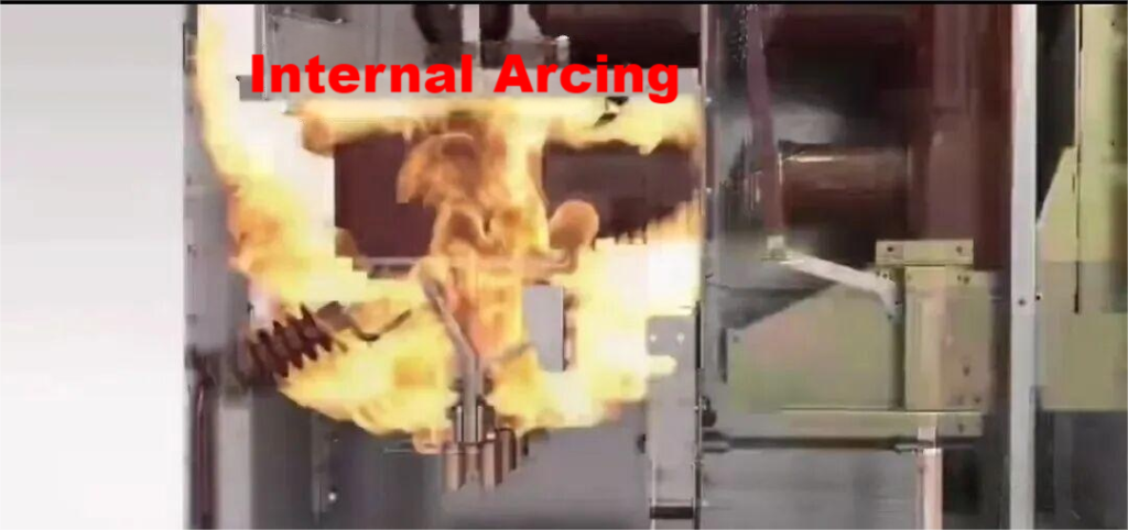 In gas-insulated or fully enclosed medium-voltage switchgear, insulation failure may result in an internal arc fault, characterized by: