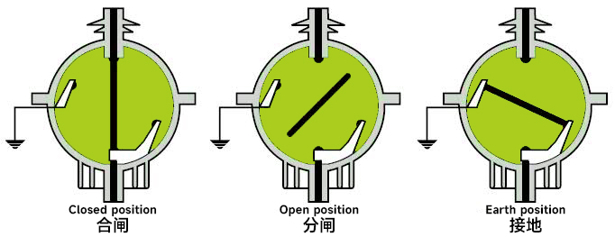 - ਲੋਡ ਸਵਿੱਚ ਡਬਲ-ਬ੍ਰੇਕ, ਰੋਟਰੀ ਮੂਵੇਬਲ ਸੰਪਰਕਾਂ ਨੂੰ ਅਪਣਾਉਂਦਾ ਹੈ ਅਤੇ ਇਸ ਵਿੱਚ ਹੇਠ ਲਿਖੀਆਂ ਤਿੰਨ ਸਥਿਤੀਆਂ ਹਨ: ਬੰਦ ਹੋਣਾ; ਖੁੱਲ੍ਹਣਾ; ਗਰਾਉਂਡਿੰਗ।