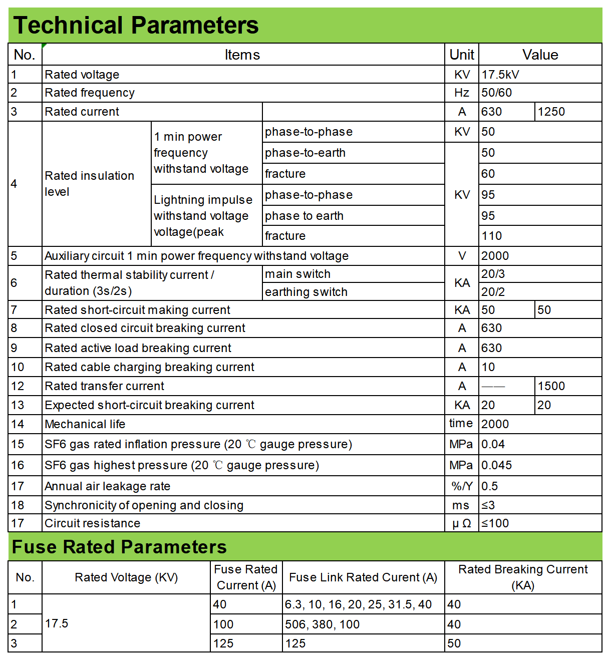 17.5kV Indoor SF6 Switch-Disconnector FL(R)N36 Load Break Switch LBS and fuse combination appliance are suitable for power stations and industrial electrical equipment powered by three-phase AC 50Hz/60Hz ring network or terminal It is used as load control line protection for 17.5kV power system. The load switch switches load current, closed-loop current, no-load transformer and cable charging current; the combined electrical appliance can break any current up to the rated short-circuit breaking current, and is suitable for complete sets of electrical equipment such as ring network units and box-type substations.