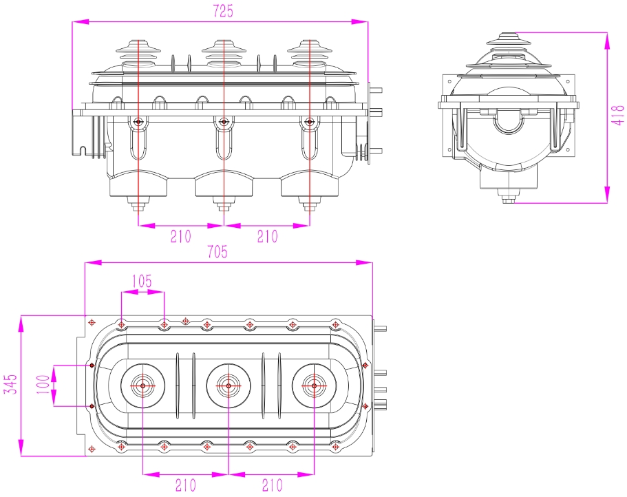 - Изоляционная коробка изготовлена из эпоксидной смолы с применением технологии автоматического геля под давлением (APG), которая отличается высокой прочностью, хорошими изоляционными характеристиками и большим запасом прочности.