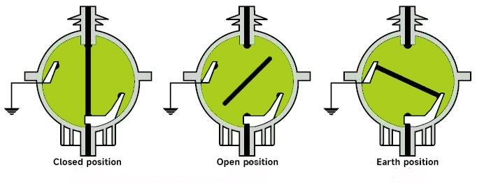 - Переключатель может находиться только в одном из положений: «закрыто», «разомкнуто» или «заземлено» и имеет функцию естественной блокировки для предотвращения неправильного срабатывания.