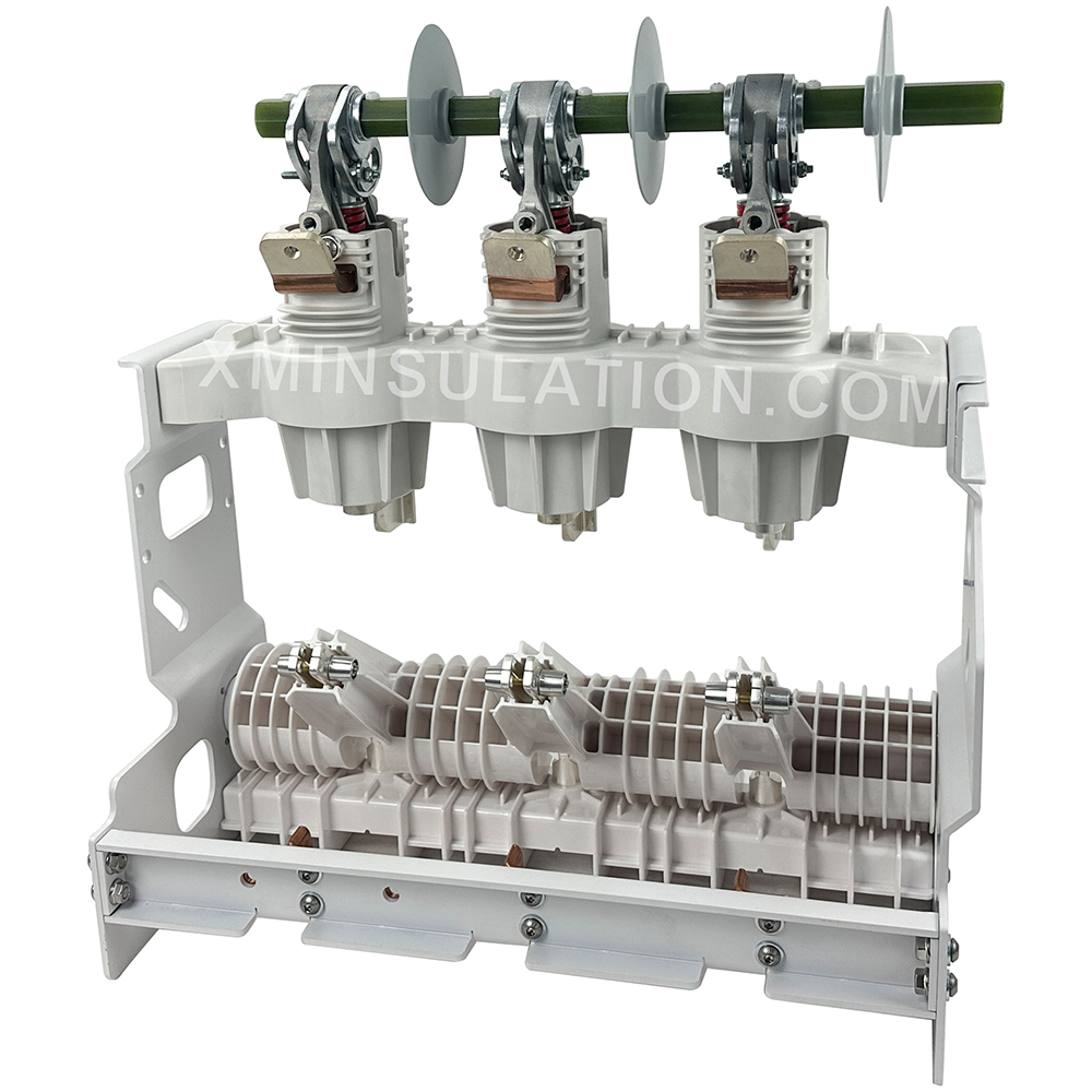 環境に優しい遮断器スイッチは、一体型の高強度縦梁(ポール)を採用し、真空消弧室は縦梁(ポール)構造に包まれています。構造が簡単で、組み立てが簡単で、デバッグが簡単などの利点があります。ナイフスイッチを分離し、閉鎖および接地操作は、他のアーム伝達なしで統合された絶縁スピンドルによって駆動されます。作業位置はより正確で、絶縁機構の操作力はより軽くなります。遮断器の主軸は、高い機械的強度と強力な絶縁性能を備えたエポキシグラスファイバー引き出しロッドを採用しています。亜鉛合金ブラケットと伝達カムを介して、真空消弧室の開閉動作が実現されます。沿面距離を増やすために、相間にシリコンシェッドがあります。環境に優しい遮断器スイッチは、密閉空気室構造のリングメインユニットだけでなく、常圧金属密閉リングメインユニットにも適しています。